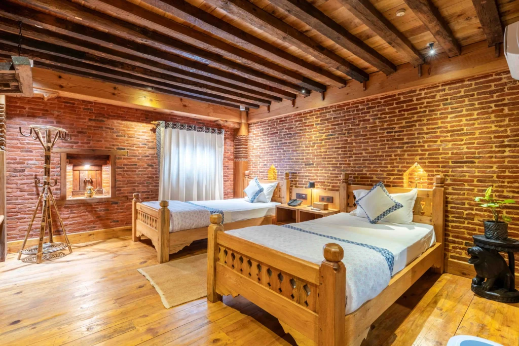 Experience Newari architecture, modern comforts, and landmark views in our twin-bedded heritage room.